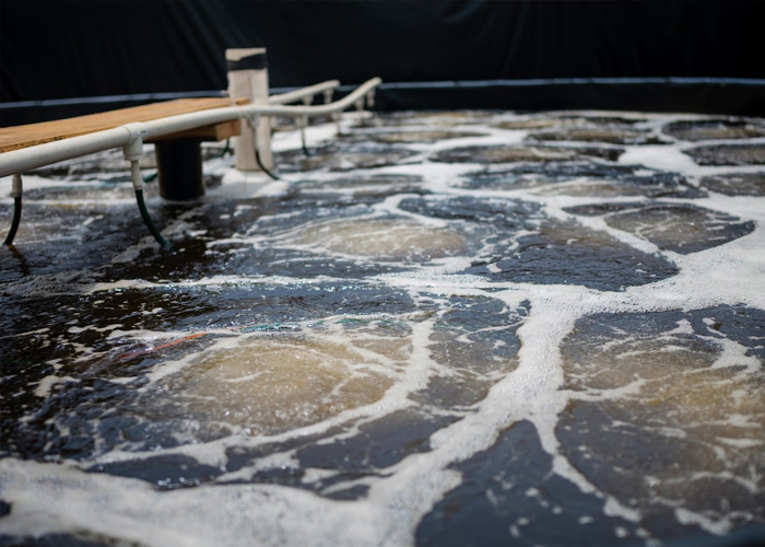 clean-bottom ponds via a central syphon.